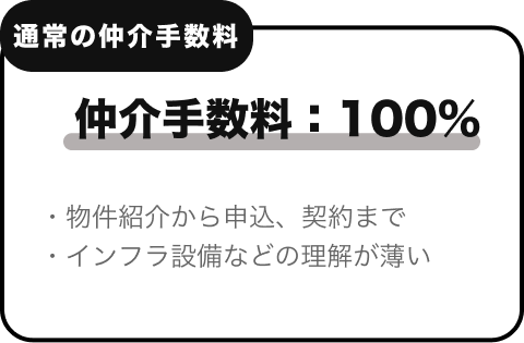 当社で物件仲介をして契約できた場合に限り当社の物件仲介手数料から50%引かせて頂きます。